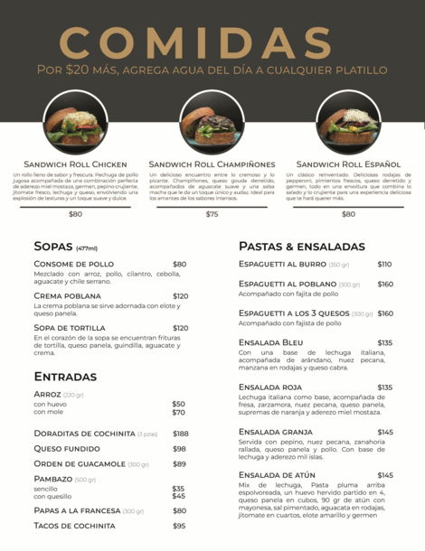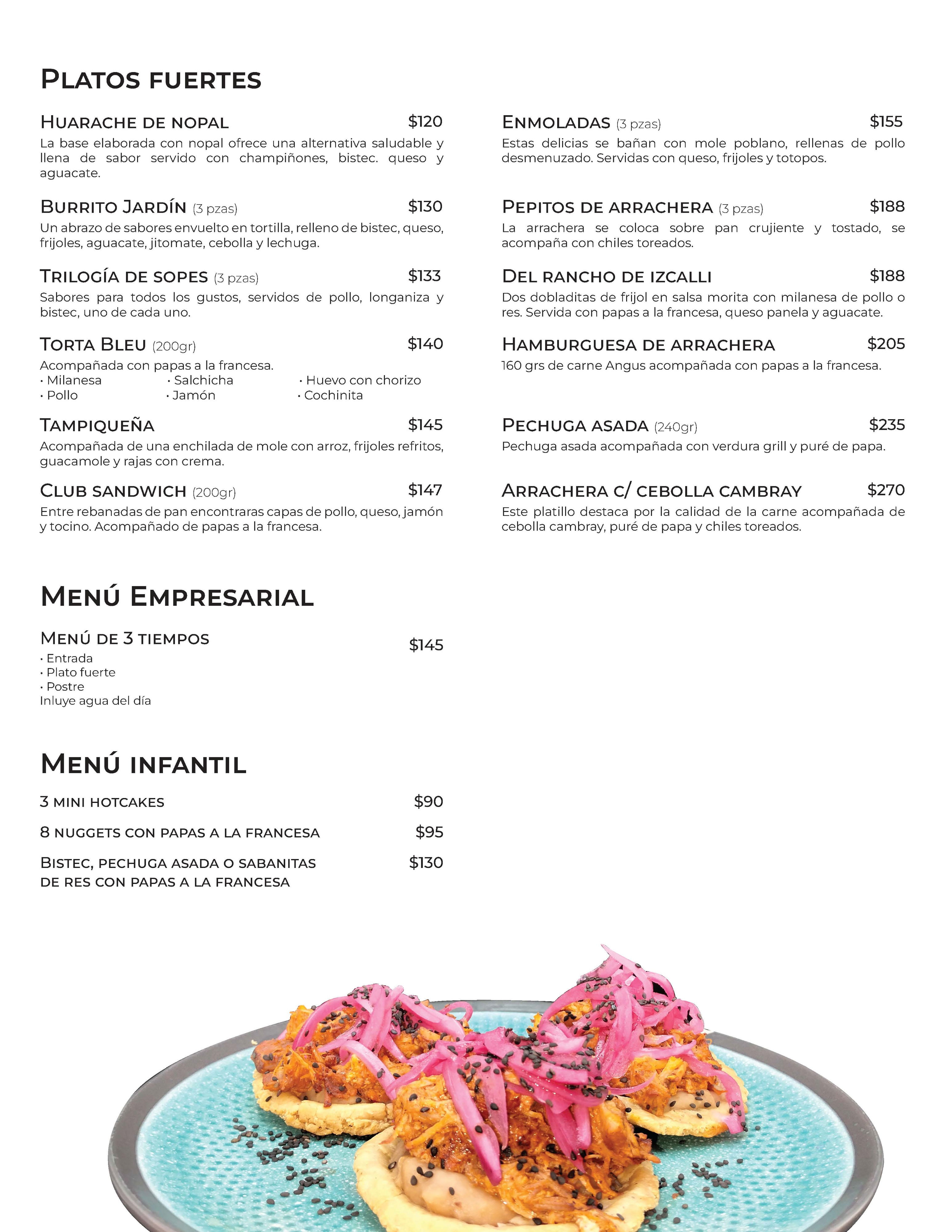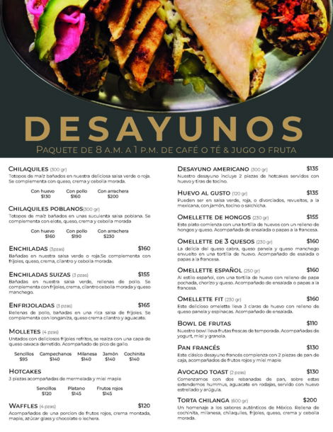 Descubre un rincón culinario donde los sabores tradicionales mexicanos se encuentran con toques creativos e internacionales. Desde el desayuno hasta la cena, nuestro menú está diseñado para ofrecer una experiencia deliciosa y variada.